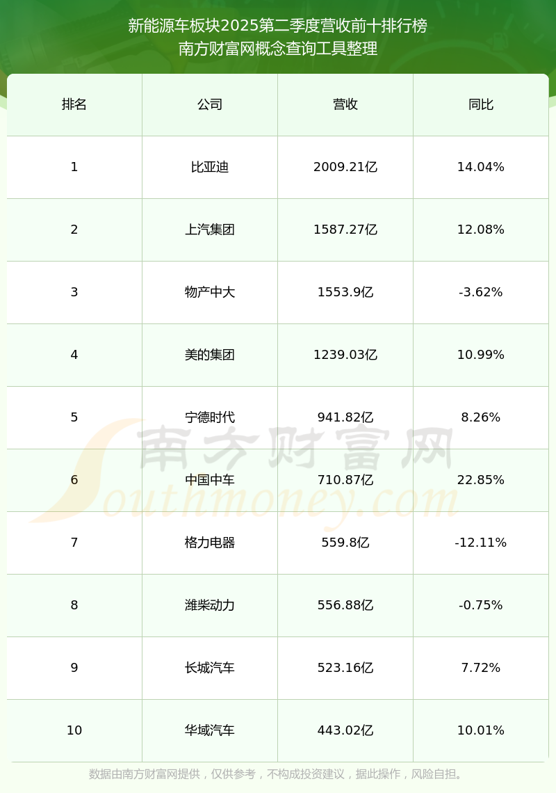 按照南方財(cái)富網(wǎng)概念查詢工具統(tǒng)計(jì),該股所屬板塊為新能源車板塊,該板塊共有653只股票,寧波高發(fā)2025第二季度營(yíng)收在該板塊中排名為第456名,該板塊2025第二季度營(yíng)收排名前十的股票如下表: