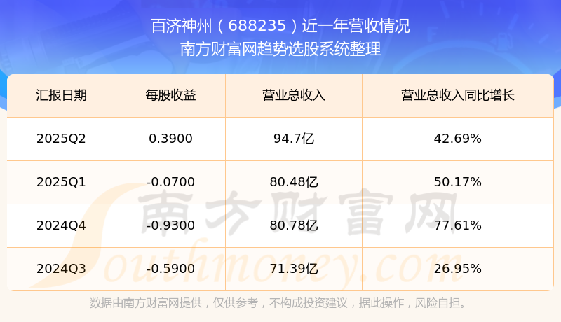 按照南方財(cái)富網(wǎng)概念查詢工具統(tǒng)計(jì),該股所屬板塊為藥物板塊,該板塊共有32只股票,百濟(jì)神州2025第二季度營(yíng)收在該板塊中排名為第32名,該板塊2025第二季度營(yíng)收排名前十的股票如下表:
