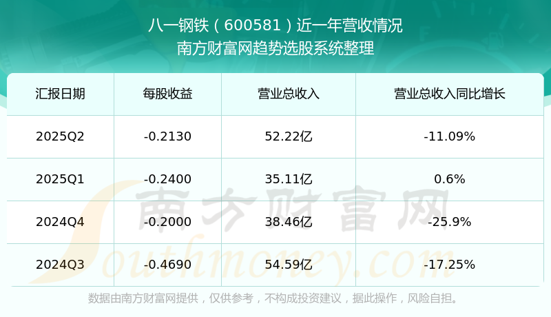 A股上市公司八一鋼鐵(代碼:600581)發(fā)布2025年第二季度財報,公司2025年第二季度歸屬于上市公司股東的凈利潤為-3.27億元,凈利潤同比增長-5.99%,環(huán)比增長11.69%。