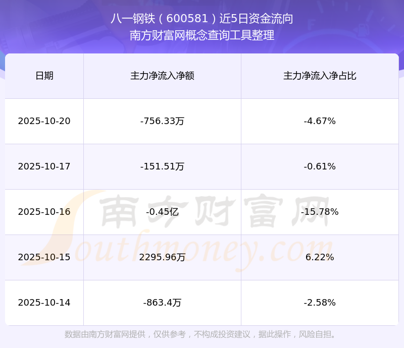 數(shù)據(jù)由南方財富網(wǎng)整理提供,僅供參考,不構(gòu)成投資建議,股市有風(fēng)險,投資需謹(jǐn)慎,據(jù)此操作,風(fēng)險自擔(dān)。