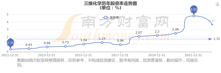 按照南方財富網(wǎng)趨勢選股系統(tǒng)統(tǒng)計,三維化學所屬行業(yè)為化學原料行業(yè),化學原料行業(yè)分紅排名情況如下表:
