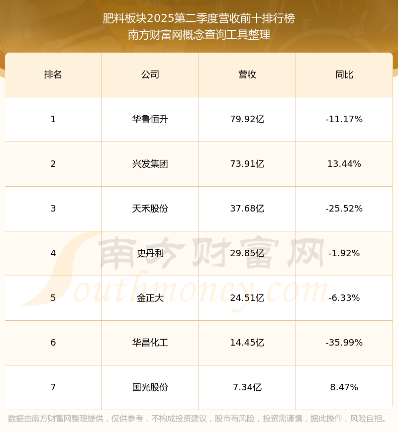 按照南方財富網概念查詢工具統(tǒng)計,該股所屬板塊為肥料板塊,該板塊共有7只股票,興發(fā)集團2025第二季度營收在該板塊中排名為第2名,該板塊2025第二季度營收排名前十的股票如下表: