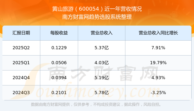 2025年第二季度,黃山旅游營收同比7.91%,凈利潤同比-15.53%。