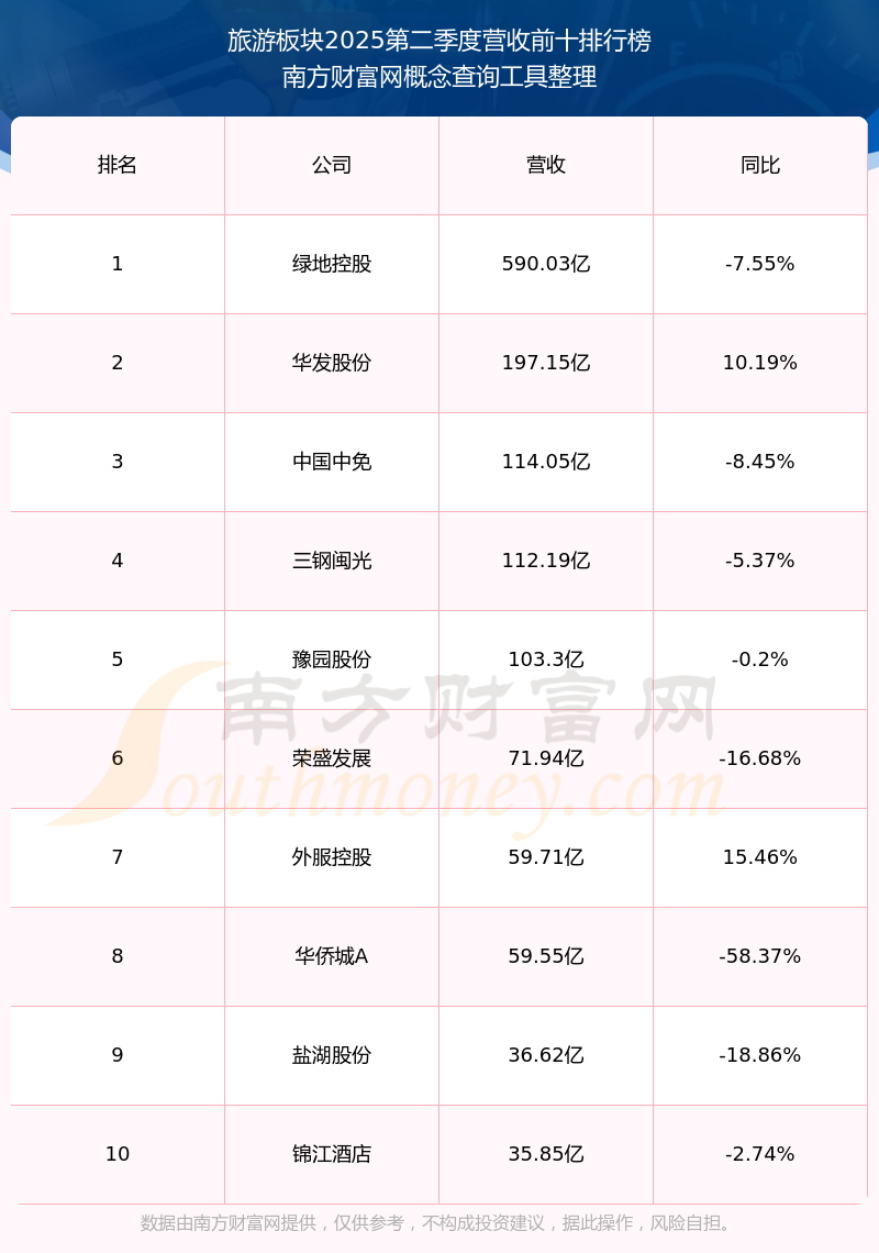 按照南方財富網(wǎng)概念查詢工具統(tǒng)計,該股所屬板塊為旅游板塊,該板塊共有152只股票,黃山旅游2025第二季度營收在該板塊中排名為第50名,該板塊2025第二季度營收排名前十的股票如下表: