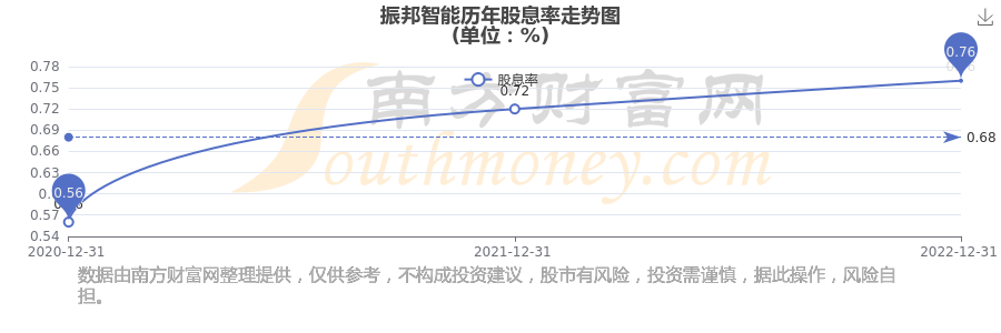 近年振邦智能年度股息率走勢(shì)如下圖: