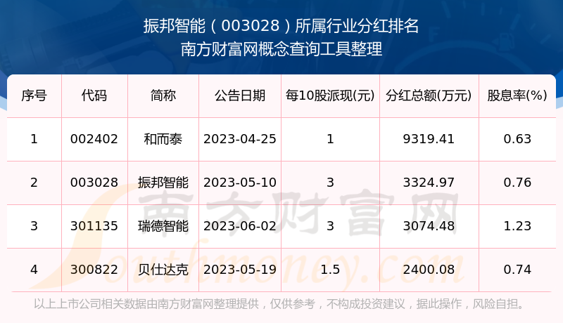 按照南方財(cái)富網(wǎng)趨勢(shì)選股系統(tǒng)統(tǒng)計(jì),振邦智能所屬行業(yè)為智能控制器行業(yè),智能控制器行業(yè)分紅排名情況如下表: