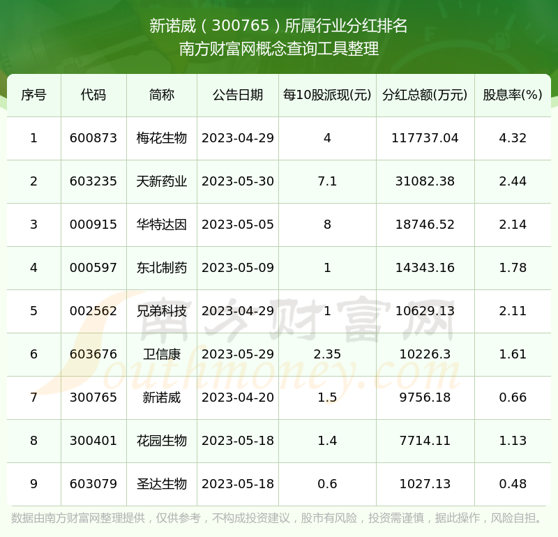 按照南方財(cái)富網(wǎng)趨勢(shì)選股系統(tǒng)統(tǒng)計(jì),新諾威所屬行業(yè)為食品飲料行業(yè),食品飲料行業(yè)分紅排名情況如下表: