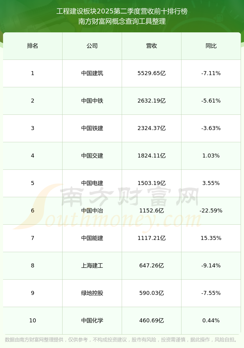 按照南方財富網(wǎng)概念查詢工具統(tǒng)計,該股所屬板塊為工程建設板塊,該板塊共有140只股票,陜建股份2025第二季度營收在該板塊中排名為第11名,該板塊2025第二季度營收排名前十的股票如下表: