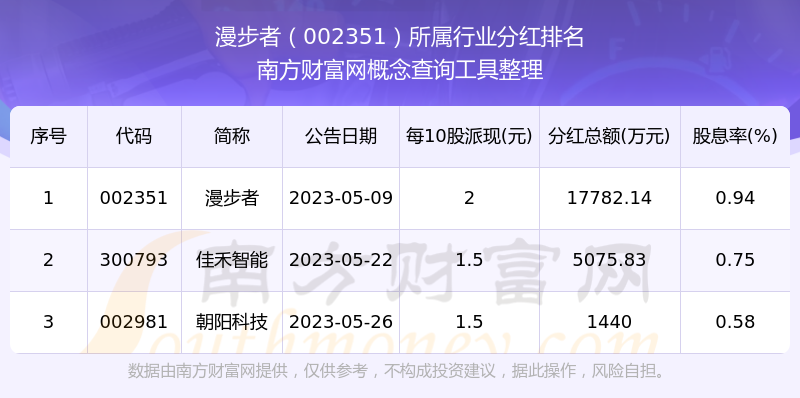 按照南方財富網(wǎng)趨勢選股系統(tǒng)統(tǒng)計,漫步者所屬行業(yè)為耳機(jī)行業(yè),耳機(jī)行業(yè)分紅排名情況如下表: