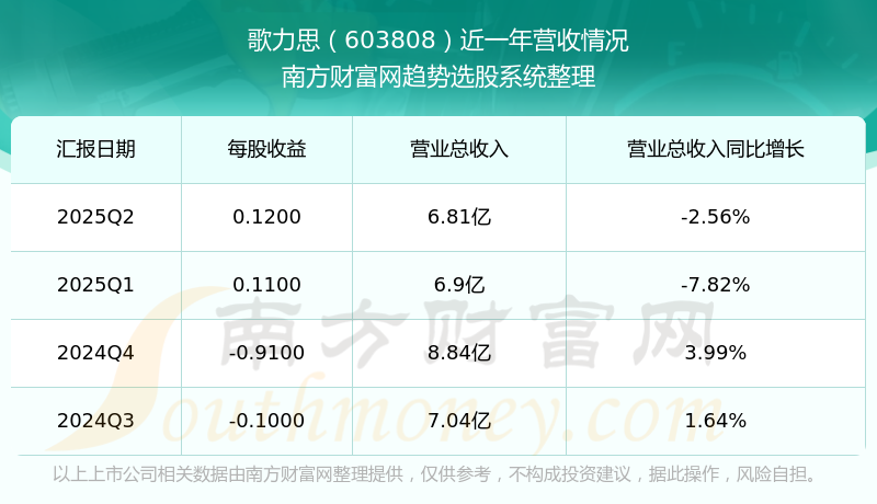 歌力思2025年第二季度顯示,公司主營收入6.81億元,同比-2.56%;歸母凈利潤4411.28萬元,同比50.27%;扣非凈利潤3623.11萬元,同比38.78%。
