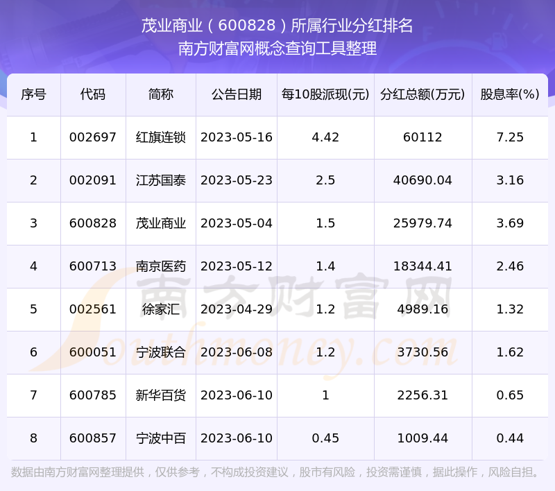 二、茂業(yè)商業(yè)600828行業(yè)分紅排名