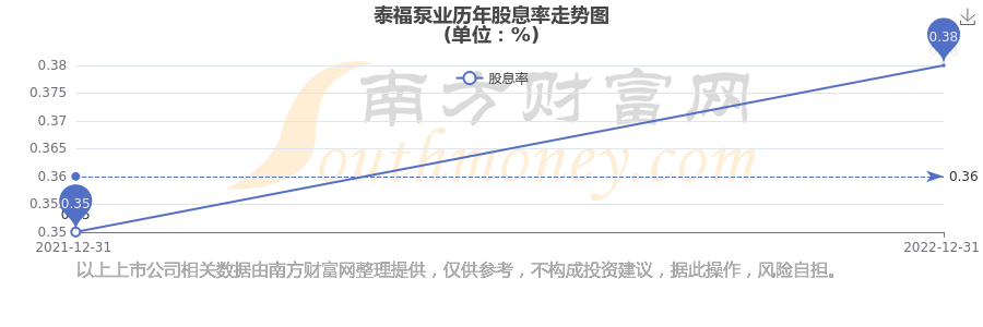 近年泰福泵業(yè)年度股息率走勢如下圖: