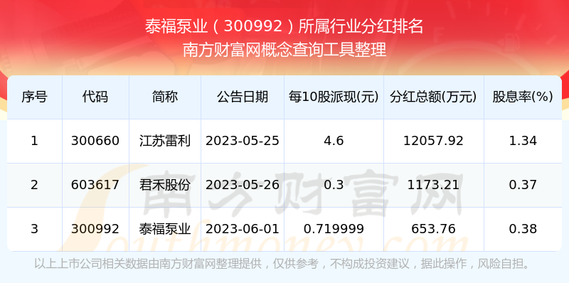 二、泰福泵業(yè)300992行業(yè)分紅排名