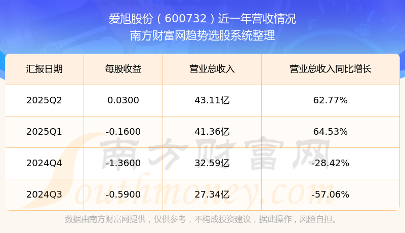 愛(ài)旭股份(600732)披露2025年第二季度報(bào)告,報(bào)告期實(shí)現(xiàn)營(yíng)收43.11億元,同比62.77%;歸母凈利潤(rùn)6286.49萬(wàn)元,同比103.8%;扣非凈利潤(rùn)4182.37萬(wàn)元,同比102.43%;基本每股收益0.03元。