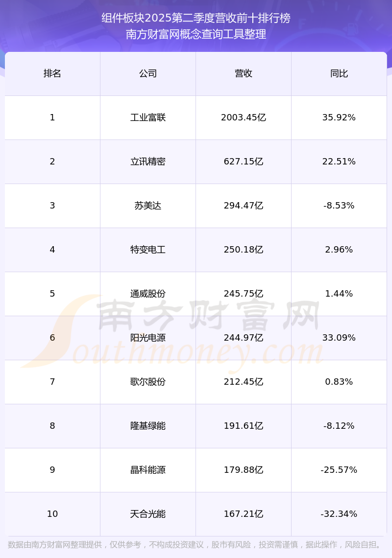 按照南方財(cái)富網(wǎng)概念查詢工具統(tǒng)計(jì),該股所屬板塊為組件板塊,該板塊共有87只股票,愛(ài)旭股份2025第二季度營(yíng)收在該板塊中排名為第29名,該板塊2025第二季度營(yíng)收排名前十的股票如下表: