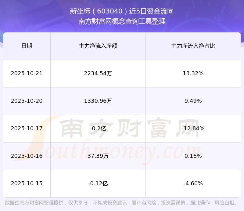 二、新坐標(biāo)(603040)近期盤面、資金面情況