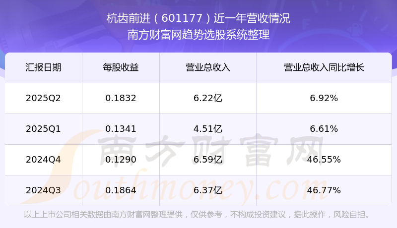 一、杭齒前進(jìn)(601177)股票營(yíng)收情況