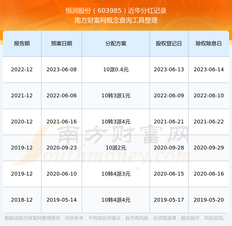 一、恒潤(rùn)股份(603985)股票分紅記錄
