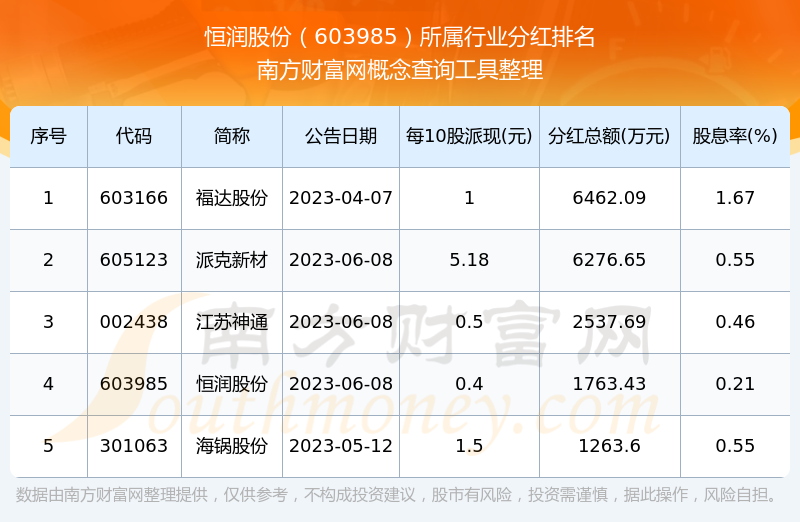 二、恒潤(rùn)股份603985行業(yè)分紅排名