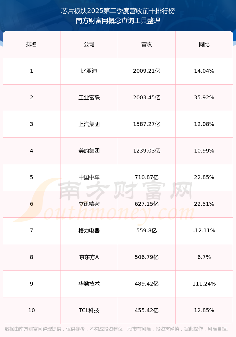 按照南方財(cái)富網(wǎng)概念查詢工具統(tǒng)計(jì),該股所屬板塊為芯片板塊,該板塊共有913只股票,力合微2025第二季度營收在該板塊中排名為第830名,該板塊2025第二季度營收排名前十的股票如下表: