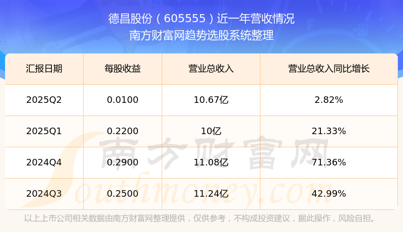 德昌股份股票近一年營收情況如下表: