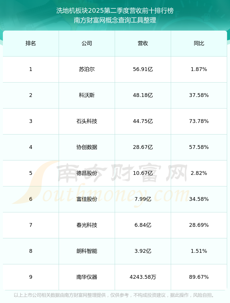 按照南方財富網概念查詢工具統(tǒng)計,該股所屬板塊為洗地機板塊,該板塊共有9只股票,德昌股份2025第二季度營收在該板塊中排名為第5名,該板塊2025第二季度營收排名前十的股票如下表: