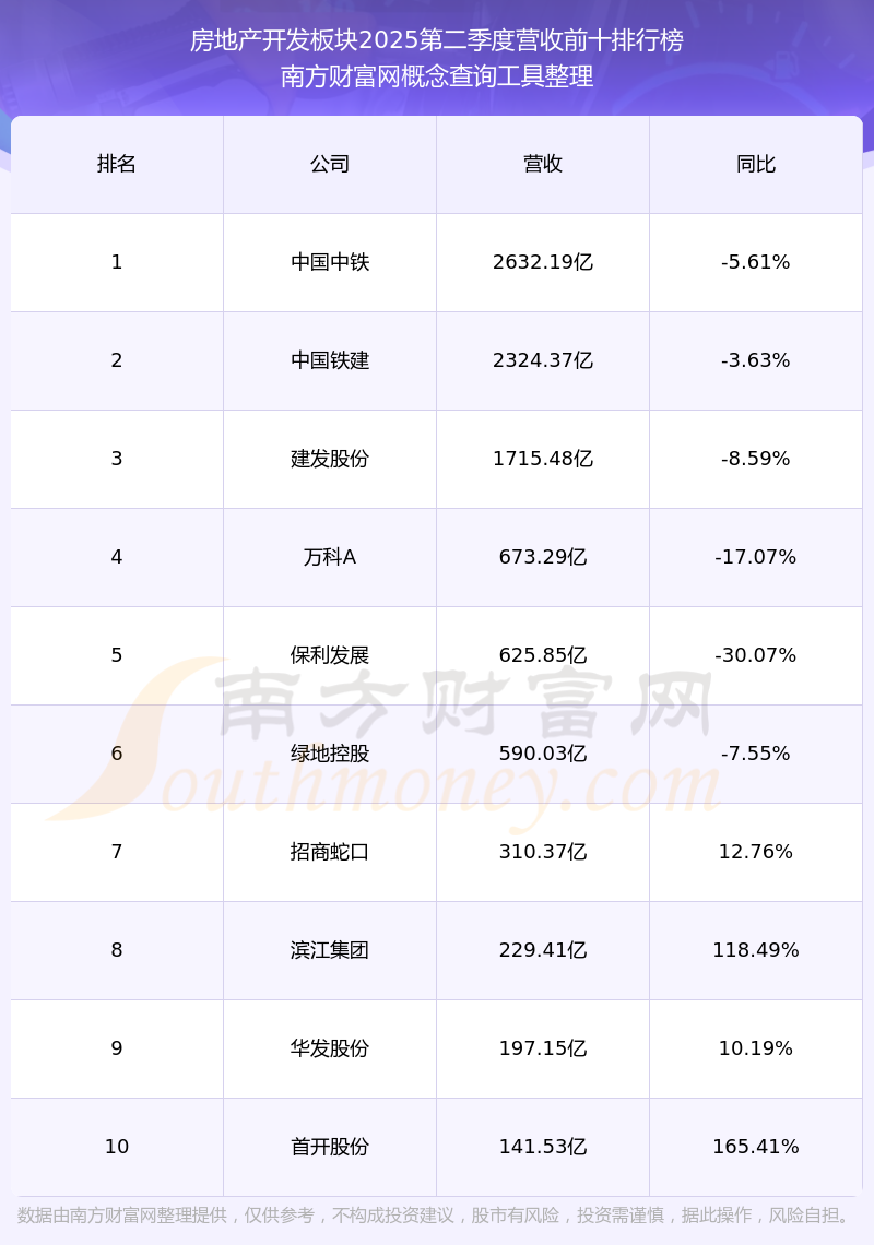 按照南方財富網概念查詢工具統計,該股所屬板塊為房地產開發(fā)板塊,該板塊共有143只股票,華遠地產2025第二季度營收在該板塊中排名為第127名,該板塊2025第二季度營收排名前十的股票如下表: