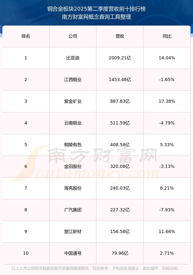 按照南方財(cái)富網(wǎng)概念查詢工具統(tǒng)計(jì),該股所屬板塊為銅合金板塊,該板塊共有19只股票,斯瑞新材2025第二季度營(yíng)收在該板塊中排名為第19名,該板塊2025第二季度營(yíng)收排名前十的股票如下表:
