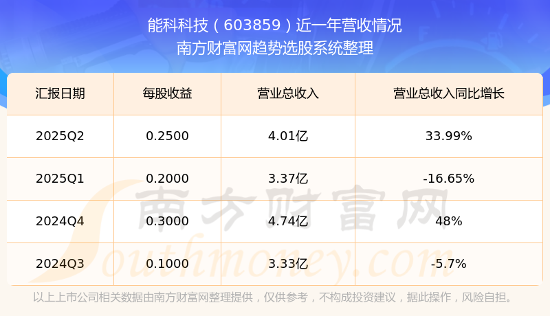 能科科技(603859)發(fā)布2025年第二季度財(cái)報(bào)。2025年第二季度能科科技實(shí)現(xiàn)營(yíng)業(yè)收入4.01億元,同比增加33.99元%,環(huán)比增加19.19%;凈利潤(rùn)為6160.81萬(wàn)元,同比增長(zhǎng)64.64%,環(huán)比增長(zhǎng)25.75%。