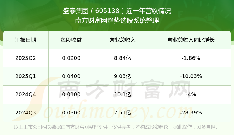 一、盛泰集團(tuán)(605138)股票營(yíng)收情況