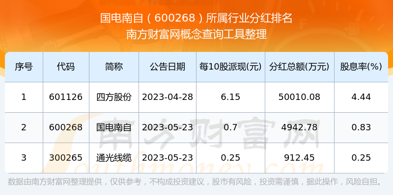 按照南方財富網(wǎng)趨勢選股系統(tǒng)統(tǒng)計,國電南自所屬行業(yè)為電網(wǎng)設(shè)備行業(yè),電網(wǎng)設(shè)備行業(yè)分紅排名情況如下表: