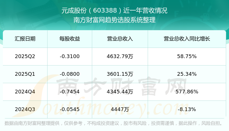 元成股份(603388)發(fā)布2025年第二季度財(cái)報(bào)。2025年第二季度元成股份實(shí)現(xiàn)營(yíng)業(yè)收入4632.79萬(wàn)元,同比增加58.75元%,環(huán)比增加28.65%;凈利潤(rùn)為-1.01億元,同比增長(zhǎng)-137.51%,環(huán)比增長(zhǎng)-300.72%。