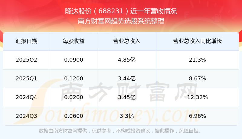 一、隆達(dá)股份(688231)股票營(yíng)收情況