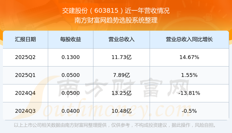 交建股份2025年第二季度財(cái)報(bào)顯示,公司主營(yíng)收入11.73億元,同比14.67%;歸母凈利潤(rùn)7951.49萬元,同比84.75%;扣非凈利潤(rùn)8094.56萬元,同比86%。