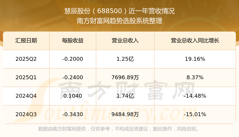 慧辰股份發(fā)布2025年第二季度財(cái)報(bào)。實(shí)現(xiàn)總營(yíng)收1.25億元,同比增長(zhǎng)19.16%;扣非凈利潤(rùn)同比增長(zhǎng)24.36%至-1530.37萬(wàn)元。