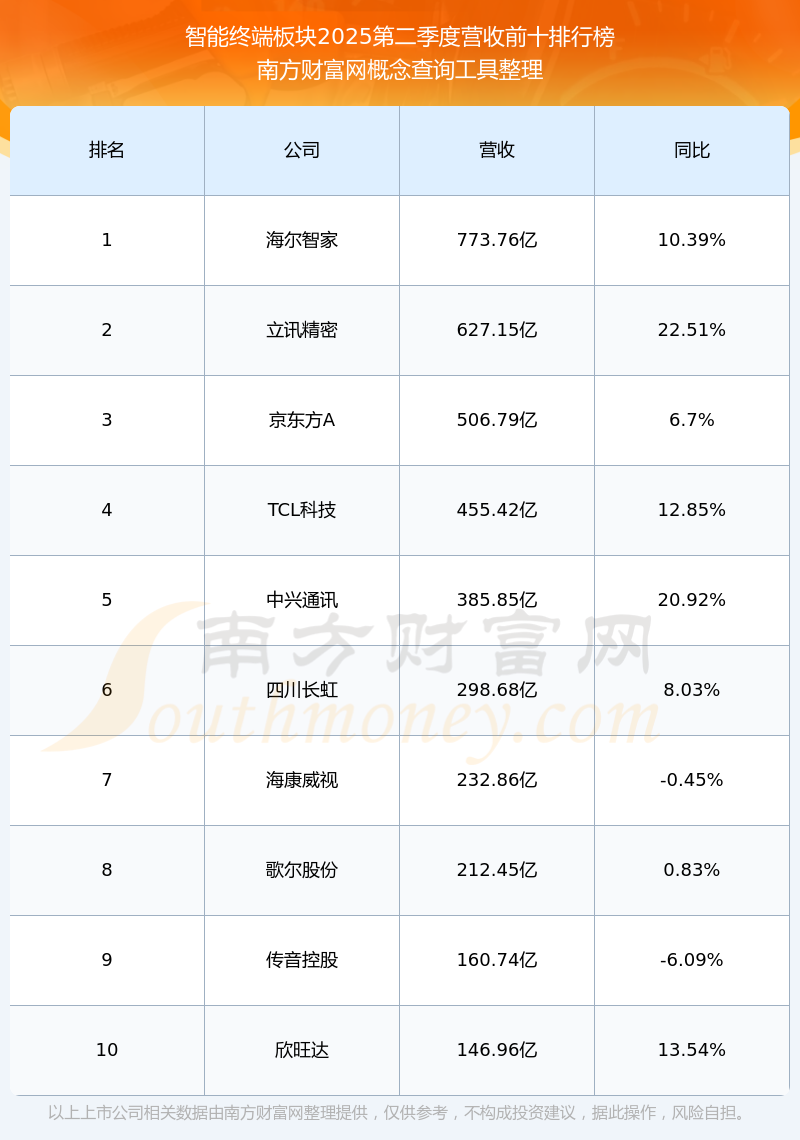 按照南方財富網(wǎng)概念查詢工具統(tǒng)計,該股所屬板塊為智能終端板塊,該板塊共有53只股票,鴻泉物聯(lián)2025第二季度營收在該板塊中排名為第53名,該板塊2025第二季度營收排名前十的股票如下表: