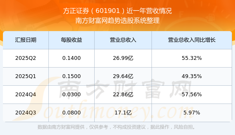 方正證券發(fā)布2025年第二季度財報。實現(xiàn)總營收26.99億元,同比增長55.32%;扣非凈利潤同比增長114.06%至11.76億元。