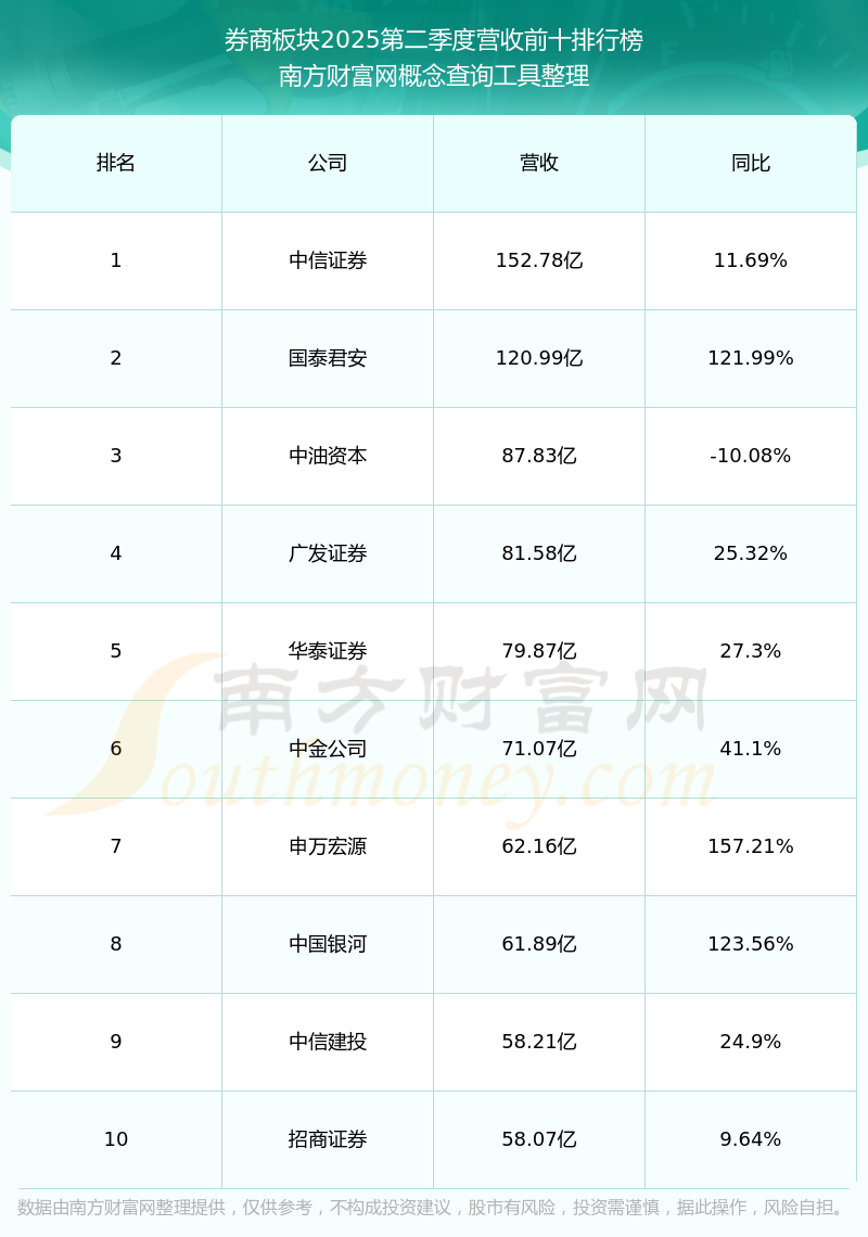 按照南方財富網概念查詢工具統(tǒng)計,該股所屬板塊為券商板塊,該板塊共有68只股票,方正證券2025第二季度營收在該板塊中排名為第17名,該板塊2025第二季度營收排名前十的股票如下表: