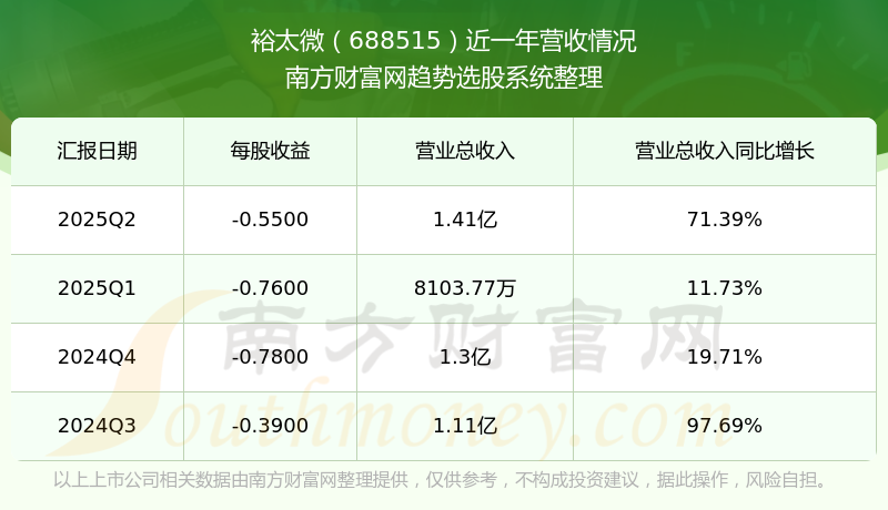 裕太微2025年第二季度財(cái)報(bào)顯示,公司主營(yíng)收入1.41億元,同比71.39%;歸母凈利潤(rùn)-4348.76萬(wàn)元,同比19.89%;扣非凈利潤(rùn)-4939.14萬(wàn)元,同比18.37%。
