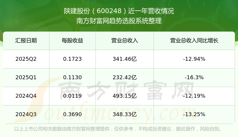 陜建股份(600248)披露2025年第二季度報告,報告期實(shí)現(xiàn)營收341.46億元,同比-12.94%;歸母凈利潤6.35億元,同比-38.36%;扣非凈利潤4.02億元,同比-51.74%;基本每股收益0.17元。