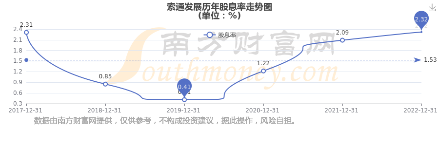 近年索通發(fā)展年度股息率走勢(shì)如下圖: