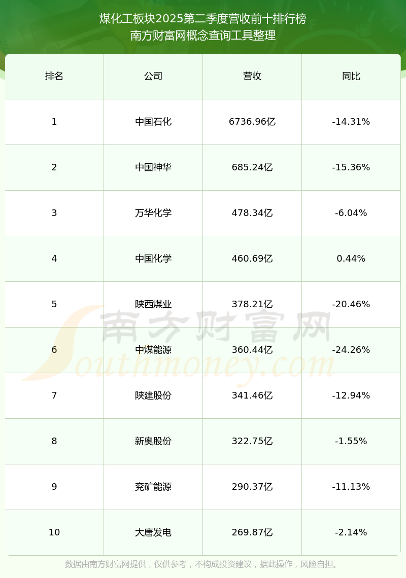按照南方財(cái)富網(wǎng)概念查詢工具統(tǒng)計(jì),該股所屬板塊為煤化工板塊,該板塊共有114只股票,天地科技2025第二季度營收在該板塊中排名為第26名,該板塊2025第二季度營收排名前十的股票如下表: