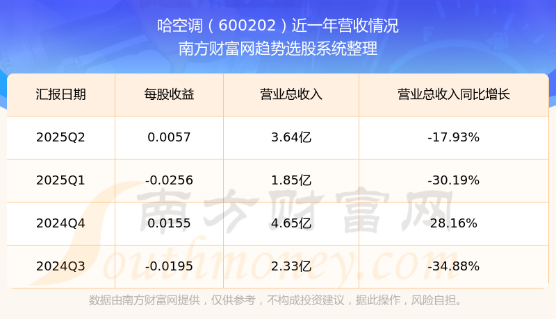 哈空調2025年第二季度財報顯示,公司主營收入3.64億元,同比-17.93%;歸母凈利潤215.18萬元,同比-21.02%;扣非凈利潤165.73萬元,同比-4.8%。