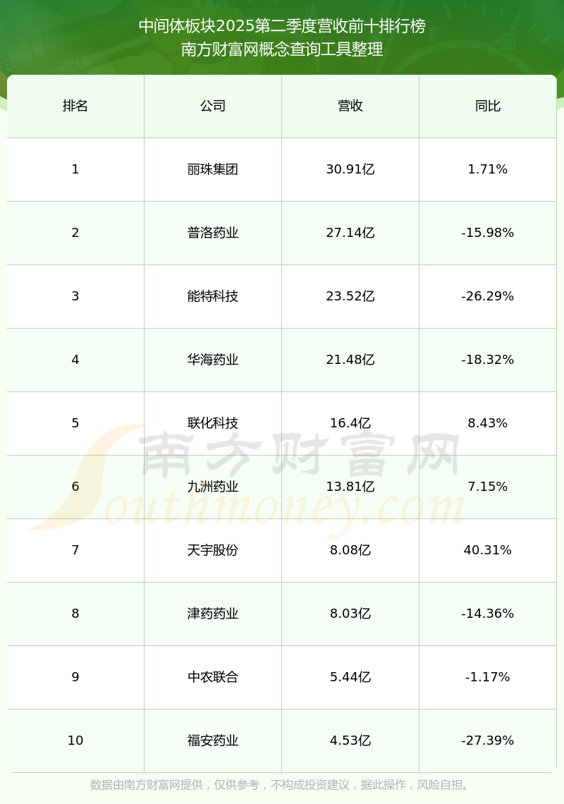 按照南方財(cái)富網(wǎng)概念查詢工具統(tǒng)計(jì),該股所屬板塊為中間體板塊,該板塊共有28只股票,華納藥廠2025第二季度營收在該板塊中排名為第28名,該板塊2025第二季度營收排名前十的股票如下表: