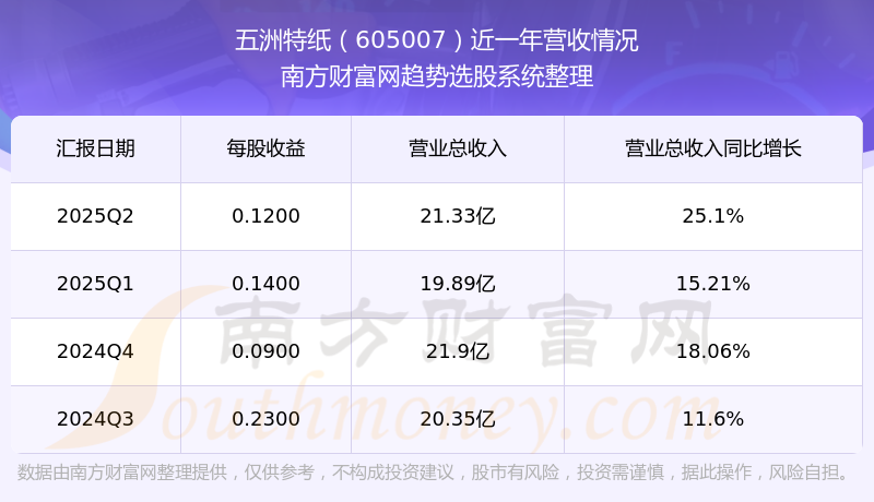 五洲特紙發(fā)布2025年第二季度財報。實現(xiàn)總營收21.33億元,同比增長25.1%;扣非凈利潤同比增長-42.33%至5351.6萬元。