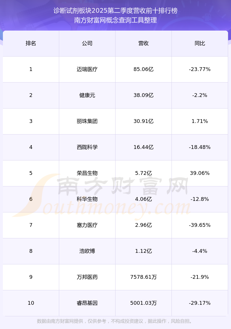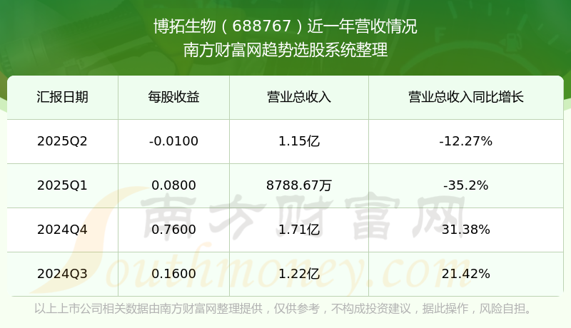 按照南方財(cái)富網(wǎng)概念查詢工具統(tǒng)計(jì),該股所屬板塊為診斷試劑板塊,該板塊共有11只股票,博拓生物2025第二季度營收在該板塊中排名為第11名,該板塊2025第二季度營收排名前十的股票如下表:
