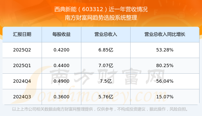 西典新能2025年第二季度公司實現(xiàn)營業(yè)收入6.85億元,同比53.28%;歸母凈利潤6717.67萬元,同比59.75%。