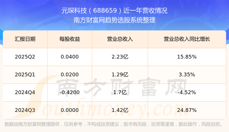 A股上市公司元琛科技(代碼:688659)發(fā)布2025年第二季度財(cái)報(bào),公司2025年第二季度歸屬于上市公司股東的凈利潤(rùn)為629.48萬(wàn)元,凈利潤(rùn)同比增長(zhǎng)14.32%,環(huán)比增長(zhǎng)149.74%。