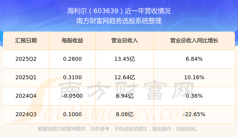 海利爾2025年第二季度報(bào)告顯示,公司實(shí)現(xiàn)主營(yíng)業(yè)務(wù)收入13.45億元,較去年同期增長(zhǎng)6.84%;歸屬于母公司股東的凈利潤(rùn)為9654.64萬(wàn)元,同比增長(zhǎng)35.24%;扣除非經(jīng)常性損益后的凈利潤(rùn)為9555.81萬(wàn)元,同比增長(zhǎng)44.5%。