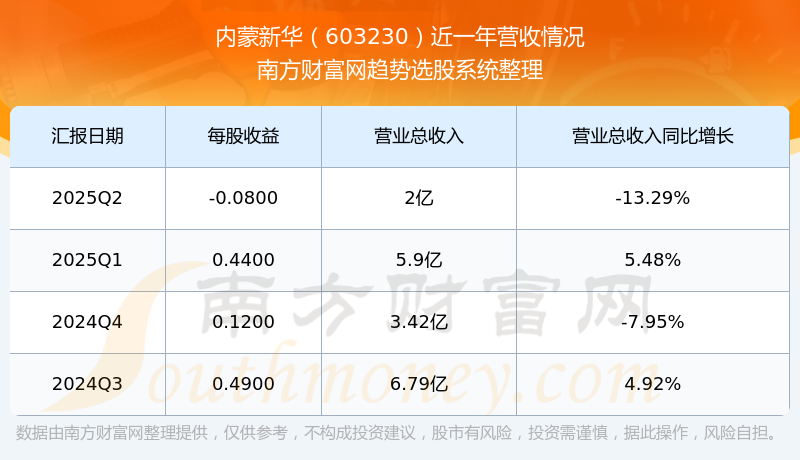 在2025年第二季度,內(nèi)蒙新華的業(yè)績表現(xiàn),主營業(yè)務(wù)收入達(dá)到2億元,實(shí)現(xiàn)了-13.29%的同比增長率。同時(shí),公司歸母凈利潤錄得-2896.85萬元,同比增長-359.07%。